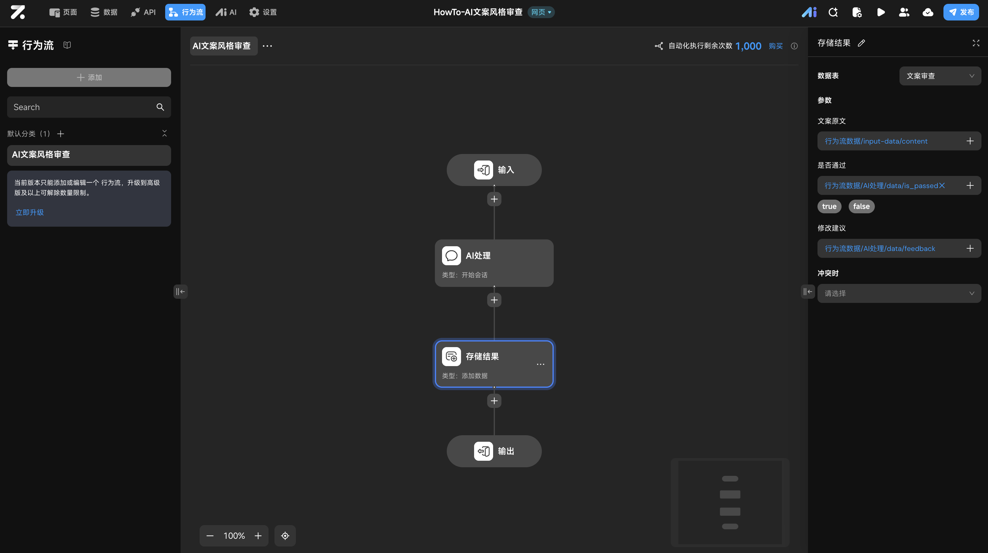 AI文案风格审查。 - 参数绑定:将行为流的