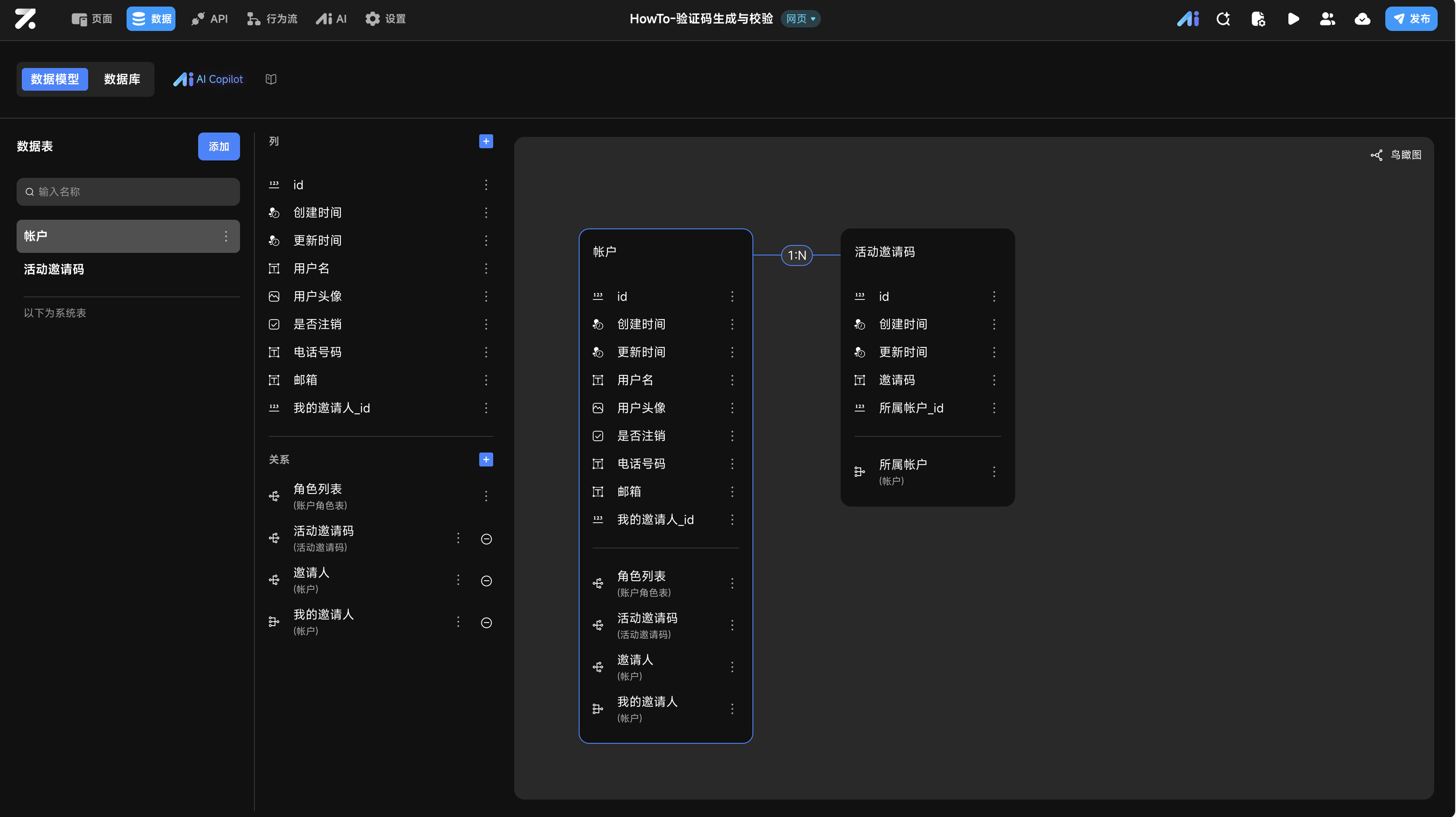 | 所属帐户_id | 长整数 | 通过与 帐户 表建立关系自动生成,用于标记该码的所有者 |