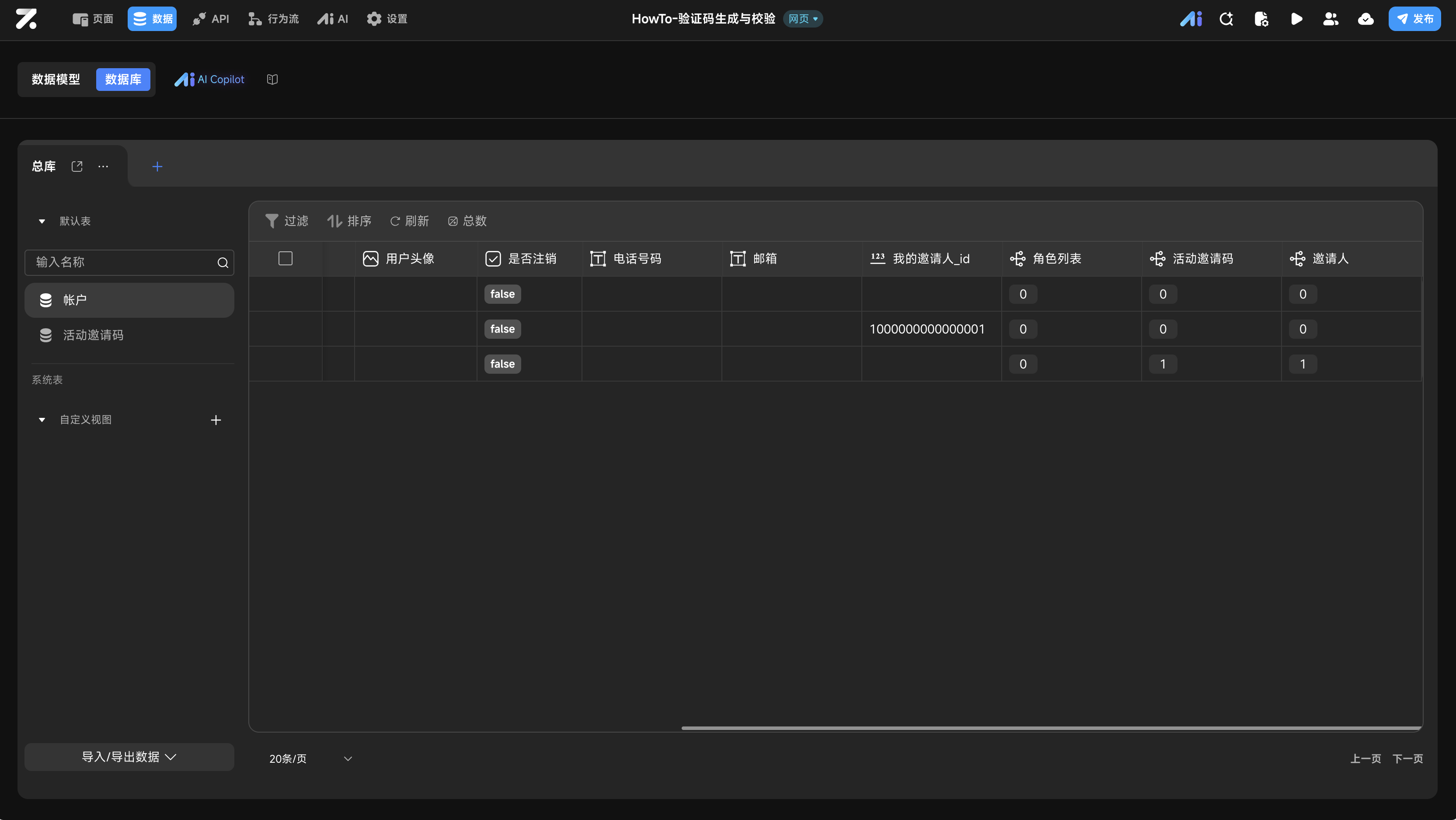 | 邀请码 | 文本 | 唯一的随机字符串(需勾选“唯一”)。 |
